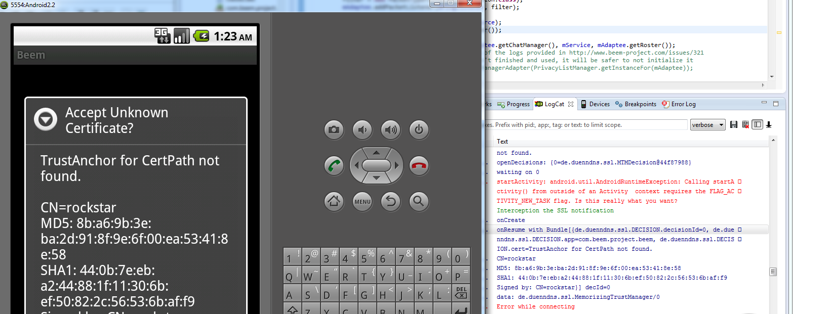 But If BEMM Android Client try connect to the Server, raised exception "Accept Unknown Certificate?" - "TrustAnchor for CertPath not found".